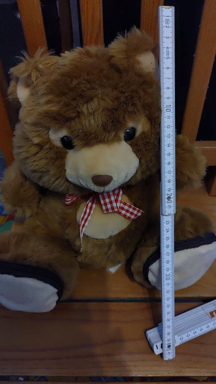 Vater und Sohn Bär. Nur zusammen abzugeben. Bär mit grauer Hose ca 40 cm groß, Bär mit blauer Hose ca. 66 cm Groß. Sammlerstücke.